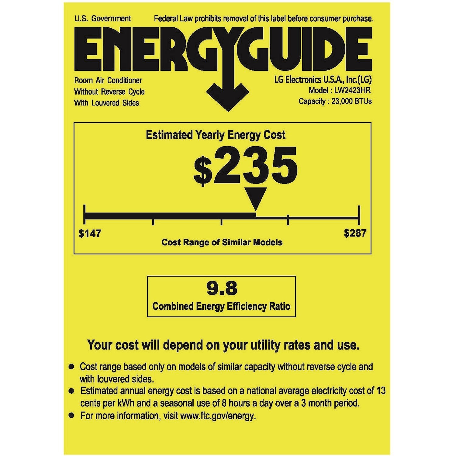 • Cools Rooms up to 1400 Square Feet: LW2423HR is ideal for cooling medium rooms (22' X 25'); With 1400 square feet cooling coverage, keep your living room, den, bedroom, or office comfortably cool year-round