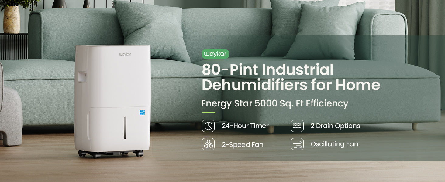 Waykar 80-120 Pint ENERGY STAR Home Dehumidifier with Drain Hose and 1.14 Gal Water Tank