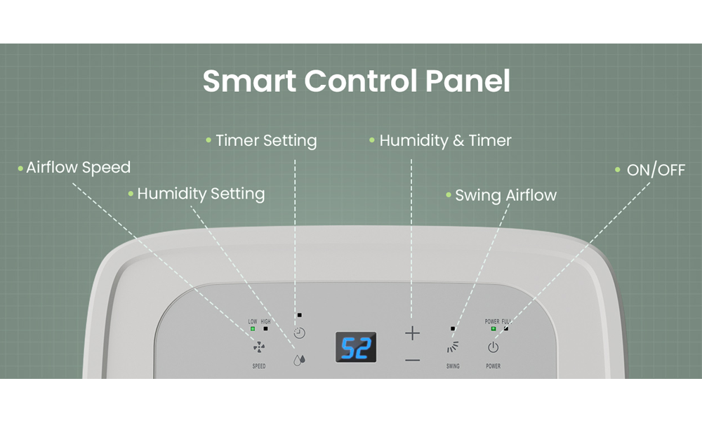 Maintain your ideal humidity (35%-85%) effortlessly using the control panel. Schedule the dehumidifier to turn on or off up to 24 hours in advance, saving energy and ensuring comfort.