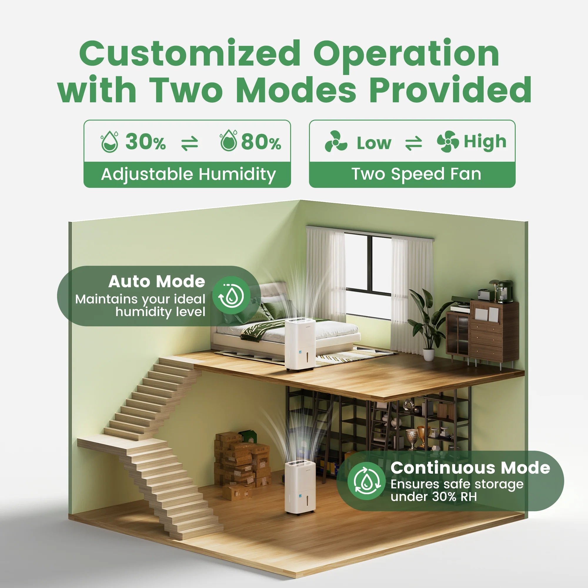 This dehumidifier is energy-efficient, reducing power consumption by 20%, saving on utility bills, and being eco-friendly.
